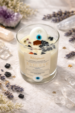 Evil Eye Blue Protection Candle with Real Gemstones & Glass Charm – Shield Against Negativity & Attract Positivity💙