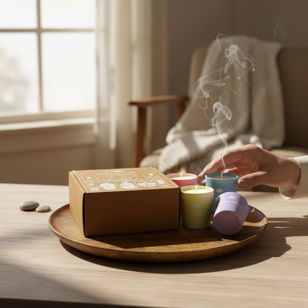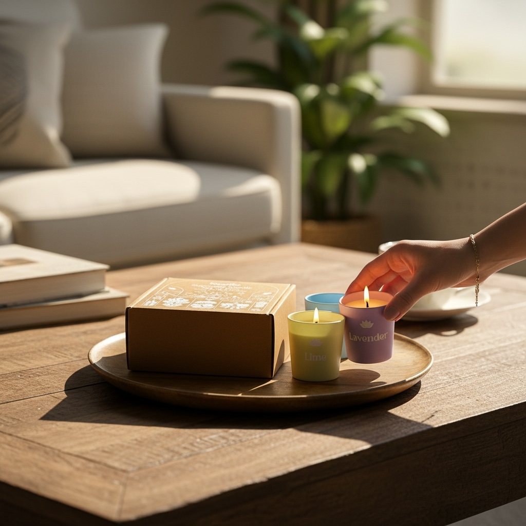Khushoo Living Sugandha Set of 4 Scented Candles (100g x 4) – Inspired by Indian Household Fragrances - Lavender + Lime + Lychee + Vanilla